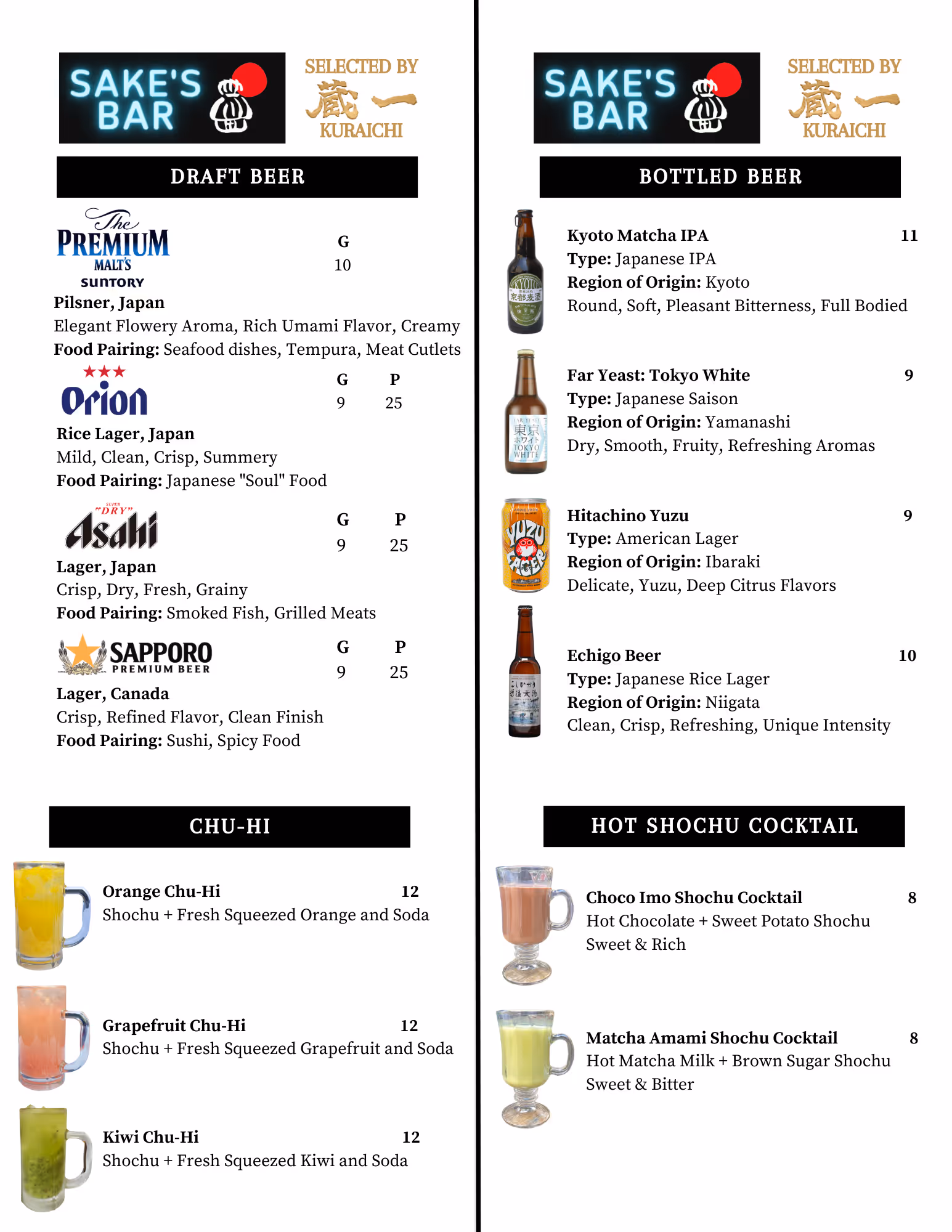 Sake's Bar Offerings