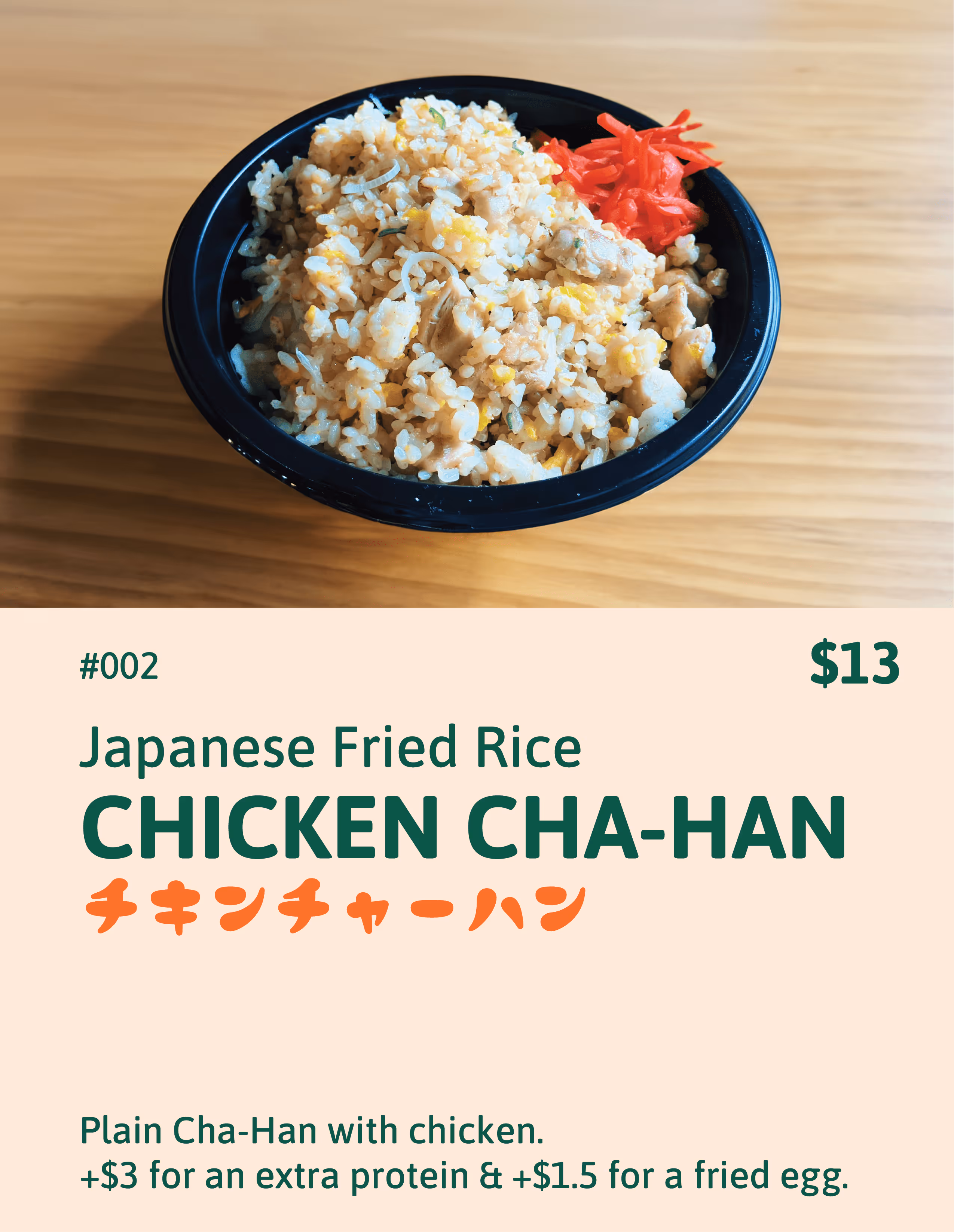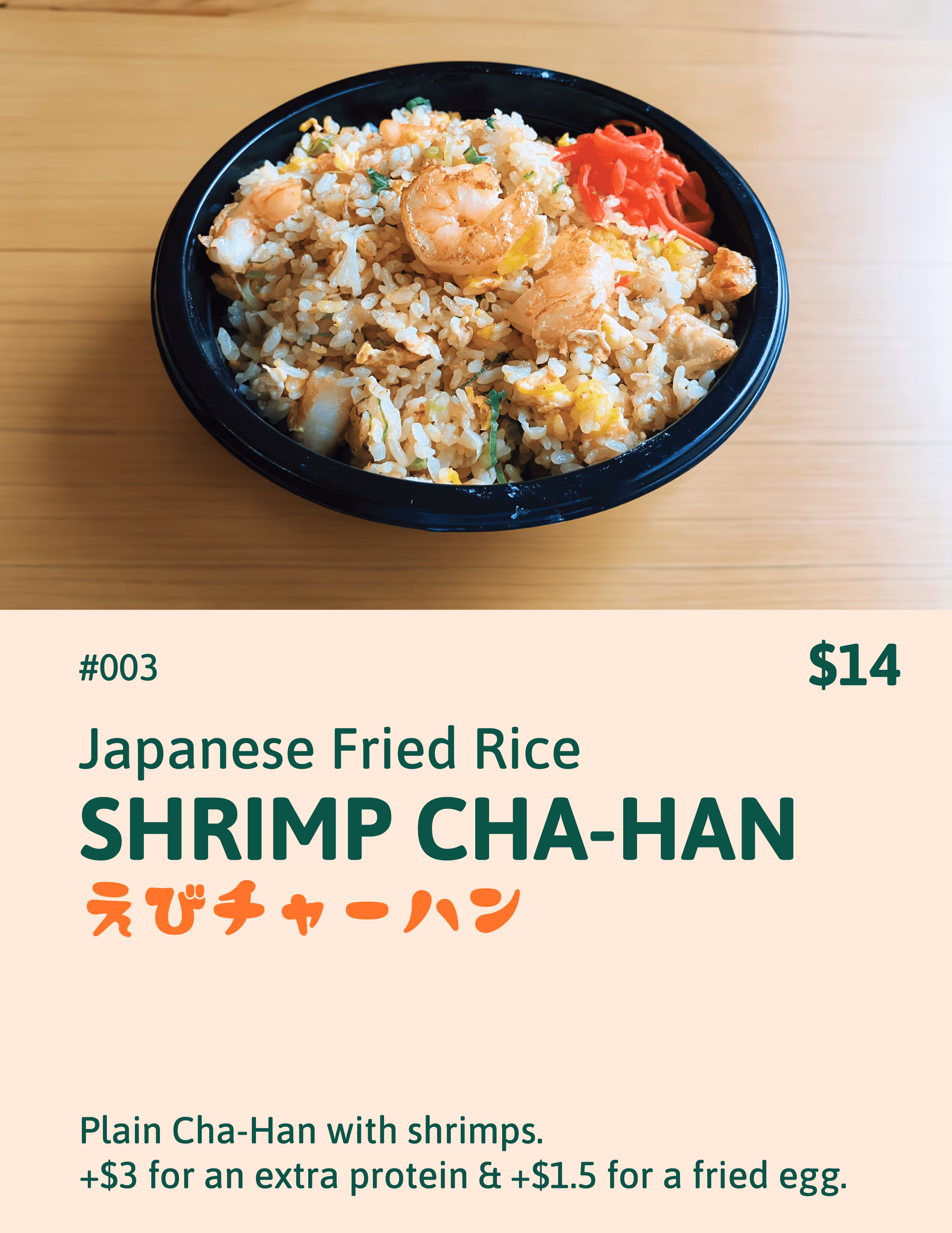 At Umami House, we take pride in crafting the perfect cha-han, using the finest ingredients and traditional techniques to bring you the rich, savory flavors of Japan. Our menu features a variety of fried rice options, from classic pork and shrimp to vegetarian delights, each dish meticulously prepared to ensure a delightful culinary experience.In addition to our signature fried rice, we offer an array of vibrant poke bowls, combining the freshest fish, crisp vegetables, and mouthwatering sauces to create a harmonious blend of textures and tastes. Whether you're in the mood for a comforting bowl of cha-han or a refreshing poke bowl, Umami Househas something to satisfy every craving.